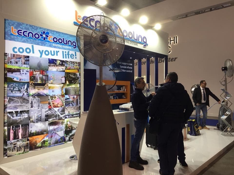 Il raffrescamento evaporativo: quando una leggera brezza di vento ci sfiora la pelle avvertiamo una sensazione di fresco. L'aria fa evaporare le particelle di acqua presenti sulla nostra pelle per mezzo del calore fornito dal nostro corpo. Questo fenomeno si chiama raffrescamento per evaporazione o "adiabatico". Pressurizzando l'acqua per mezzo di una pompa ad alta pressione, attraverso i nostri ugelli nebulizzatori brevettati siamo in grado di creare una nebbia ultra fine composta da milioni di goccioline della dimensione media inferiore ai 10 micron.